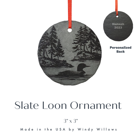 Loon Lake Ornament | 3" Maine Nature Ornament | Personalized Rustic Christmas Slate Bird Ornament