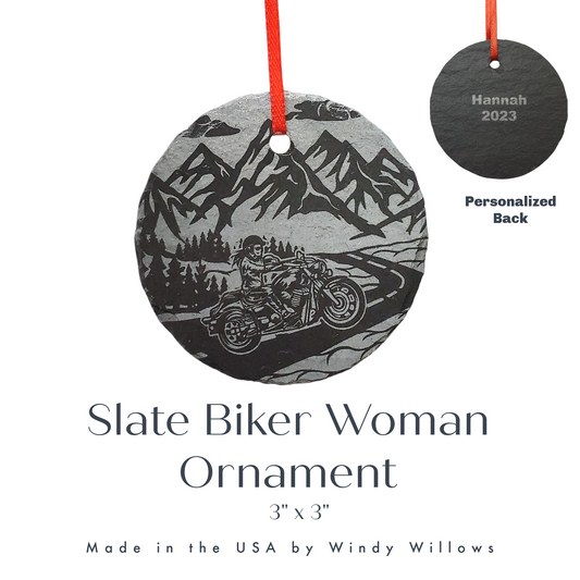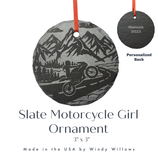 Personalized Girl Motorcycle Biker Christmas Ornament | 3" Harley Ornament | Rustic Slate Christmas Custom Gift Biker Chick Motorcycle Lover