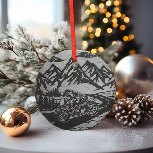 Personalized Motorcycle Biker Christmas Ornament | 3" Harley Ornament | Rustic Slate Christmas | Custom Gift for Biker Motorcycle Lover