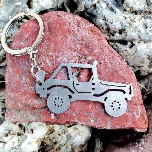 Rugged Stainless Steel 4 Door Jeep Keychain