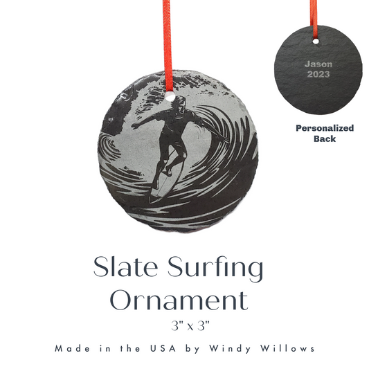Surfing Ornament | 3" Custom Surfer Ornament | Personalized Christmas Slate Ornament Wave Surf Gift tag