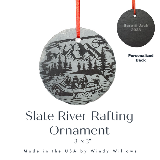 Whitewater River Rafting Ornament | 3" Raft Adventure Ornament | Personalized Rustic Christmas Slate Ornament