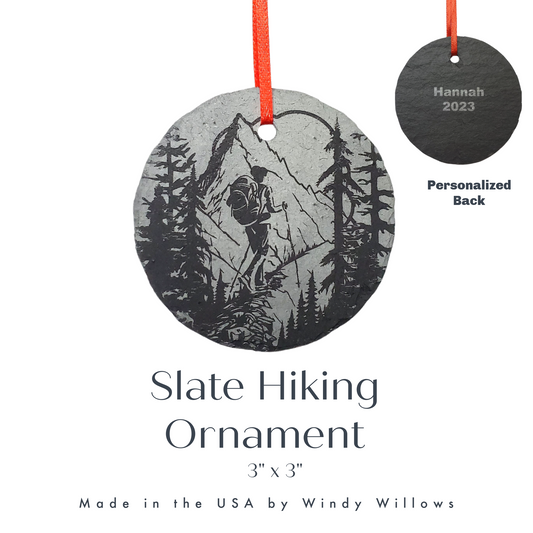 Woman Hiking Ornament | 3" Backpacking Custom Adventure Ornament | Personalized Rustic Christmas Slate Decoration | Custom Nature Lover gift