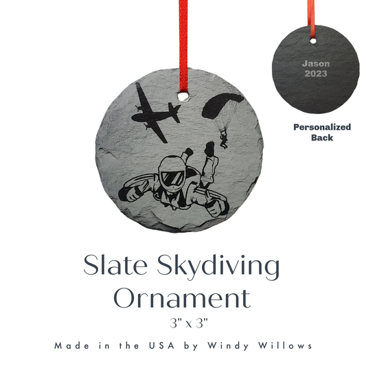 Skydiving Ornament | 3" Parachuting Adventure Ornament | Personalized Rustic Christmas Slate Gift Custom Skydiver Ornament | Love Skydive