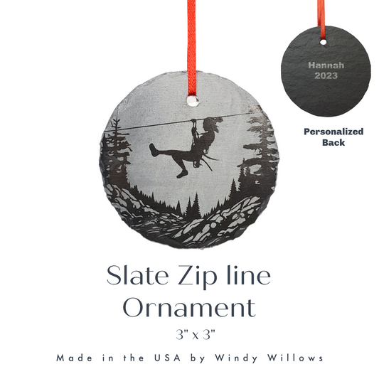 Zipline Ornament | 3" Custom Female Zip Line Ornament | Personalized Christmas Slate Ornament Zip Wire Travel Vacation Ziplining Gift tag