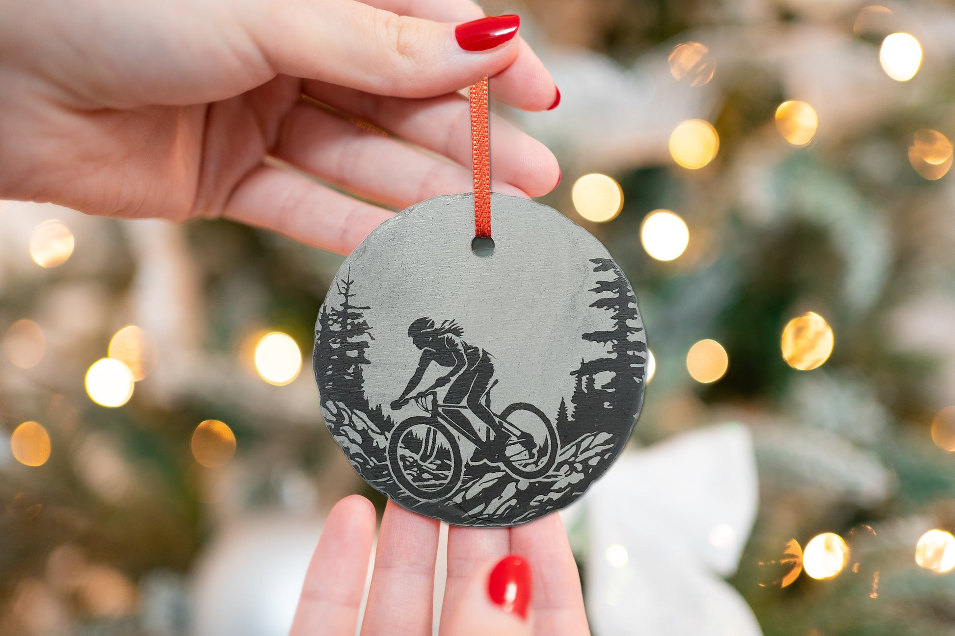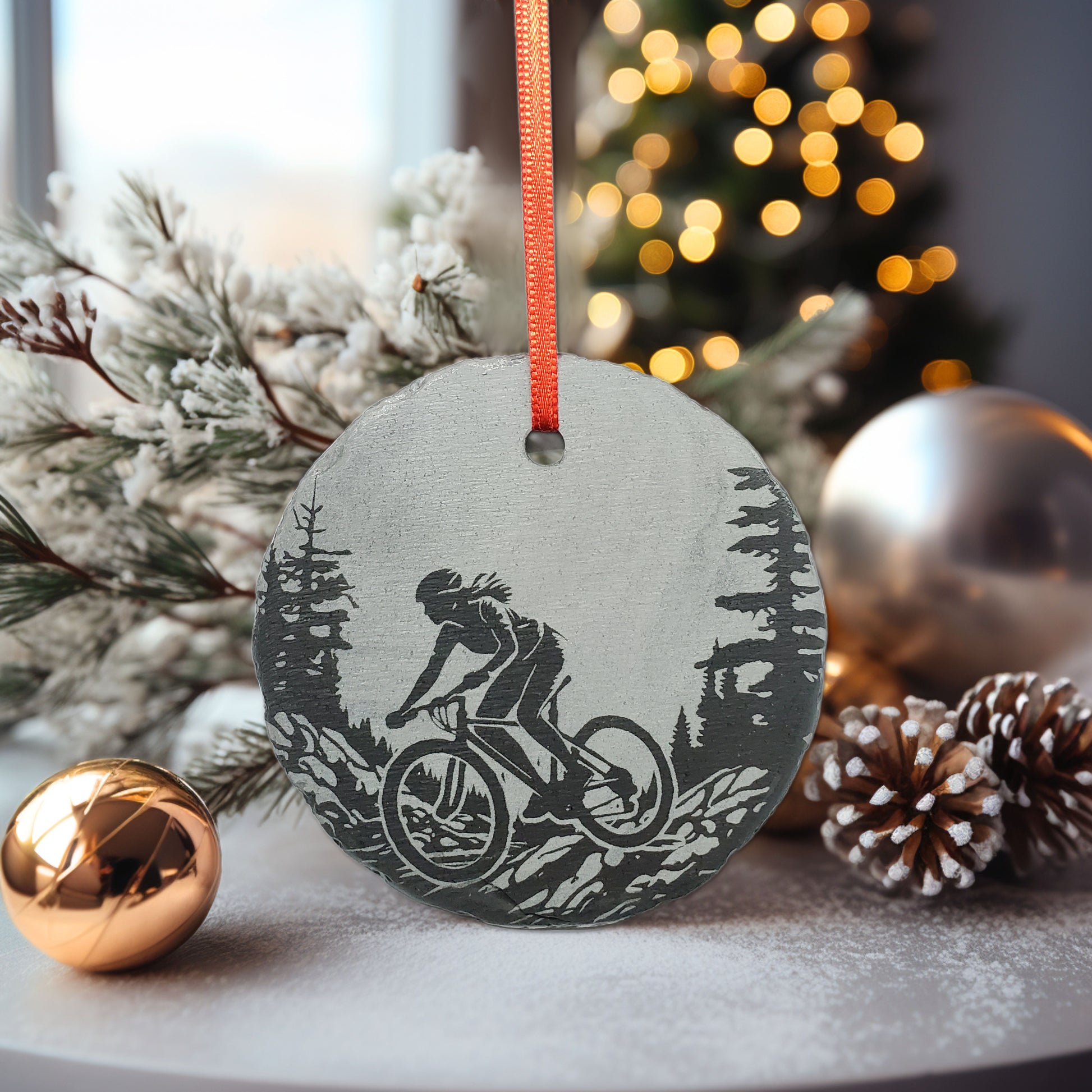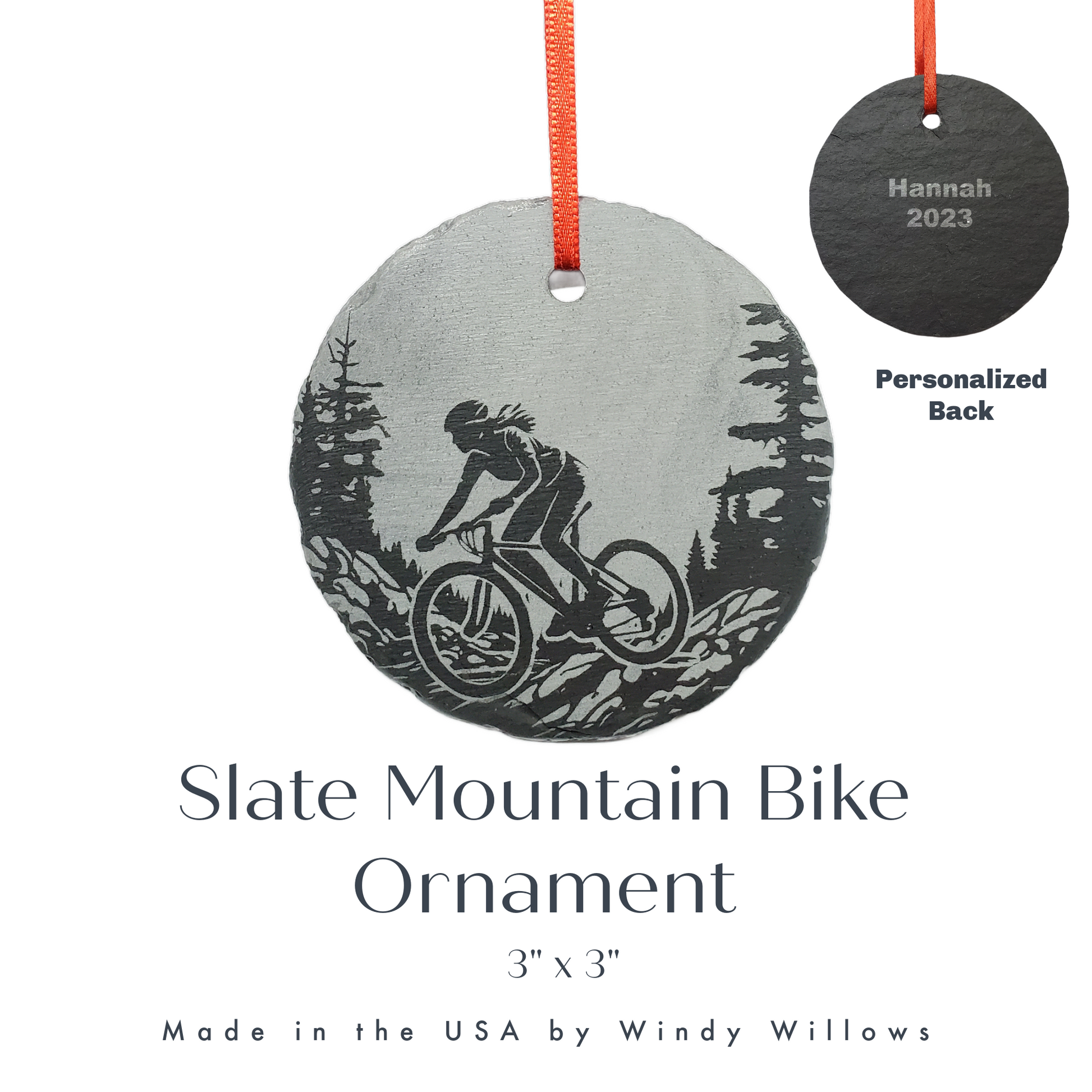 Female Mountain Bike Ornament | 3" MTB Adventure Ornament | Personalized Mountain Biking Christmas Slate Ornament | Bicycle